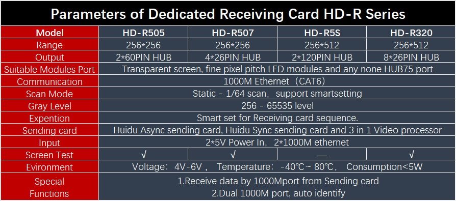 R5S (2 * 120PIN), R320 (8 * HUB320) 、 R505 (2 * 60PIN) 、 R507 (4 * 26PIN),
